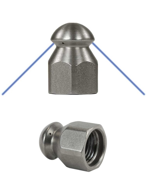 - Equipée de 3 jets arrière à 45° pour tracter le flexible et évacuer les impuretés
