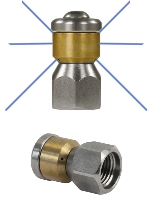 Buse canalisation rotative 3 jets av/ar+1lat F1/4 HP 12 inox