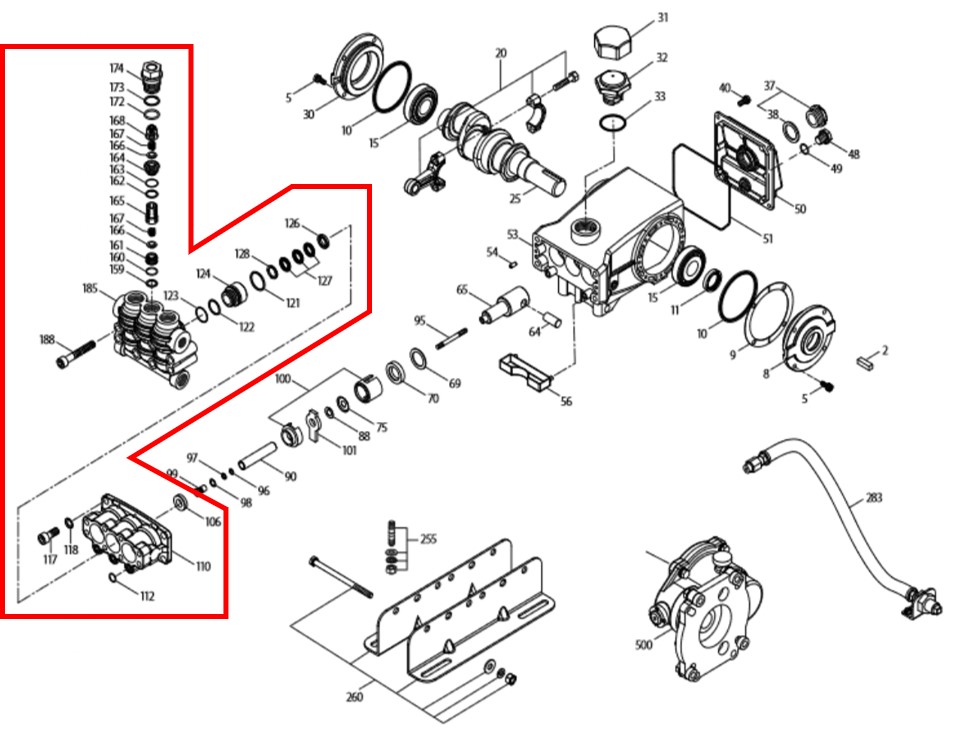 - Culasse livrée avec les pièces entourées en rouge sur la vue éclatée