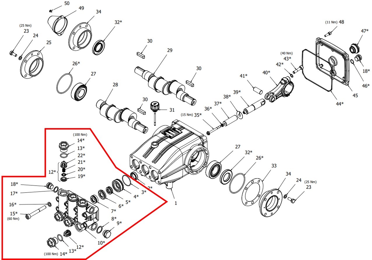 - Adaptable sur pompe haute pression : HAWK série NLTI pour pistons Ø18