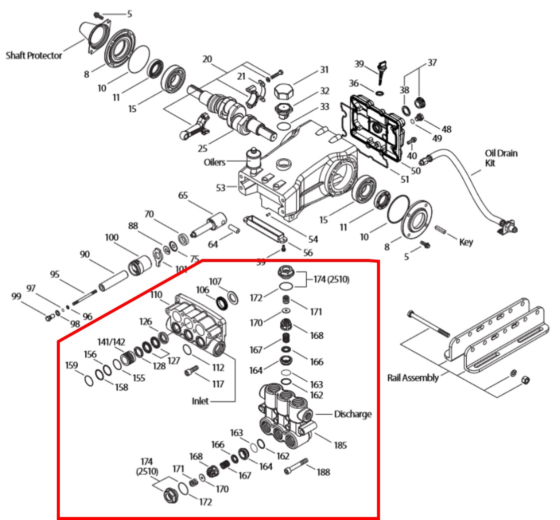 - Adaptable sur pompe haute pression : CAT PUMPS pour pistons Ø25