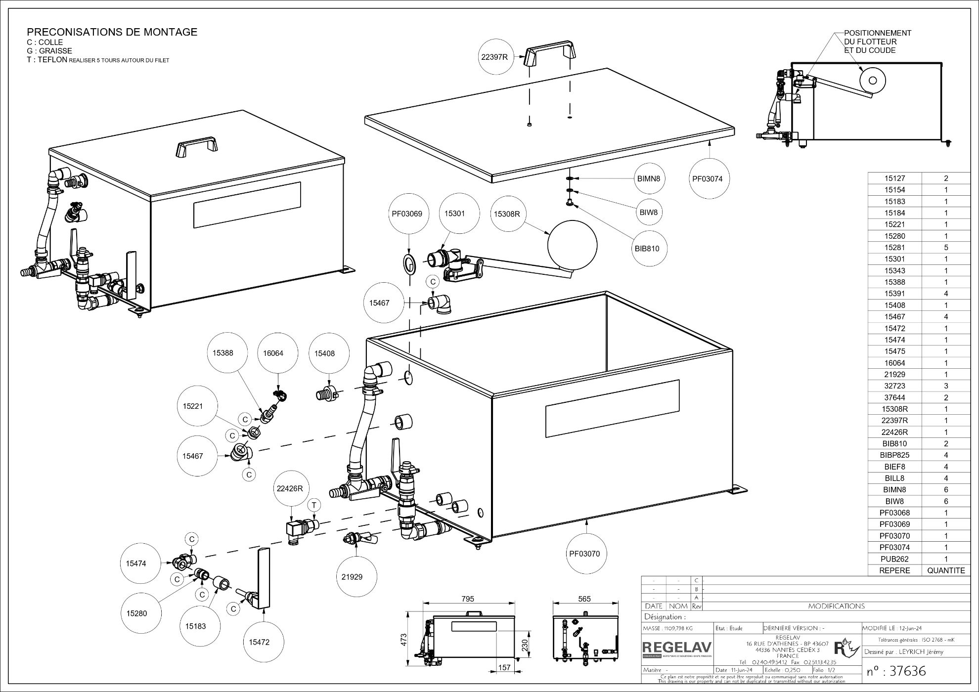 - Munie d'une vanne de remplissage avec flotteur pour