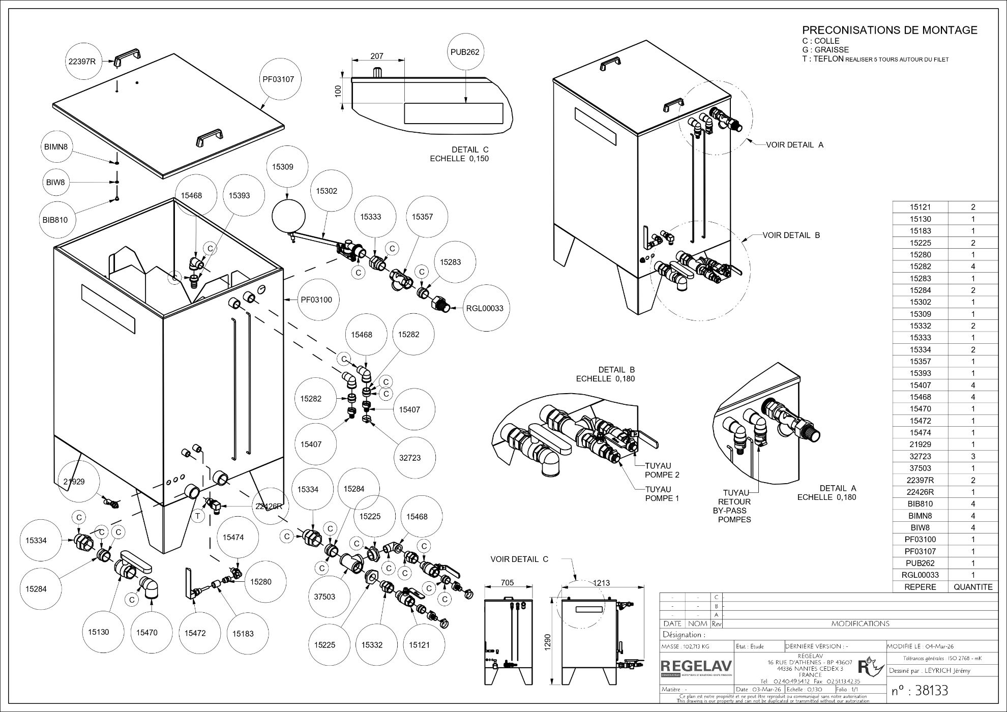 Kit bac tampon inox 500L (eau chaude <70°C) pour nettoyeur stationnaire PFX2