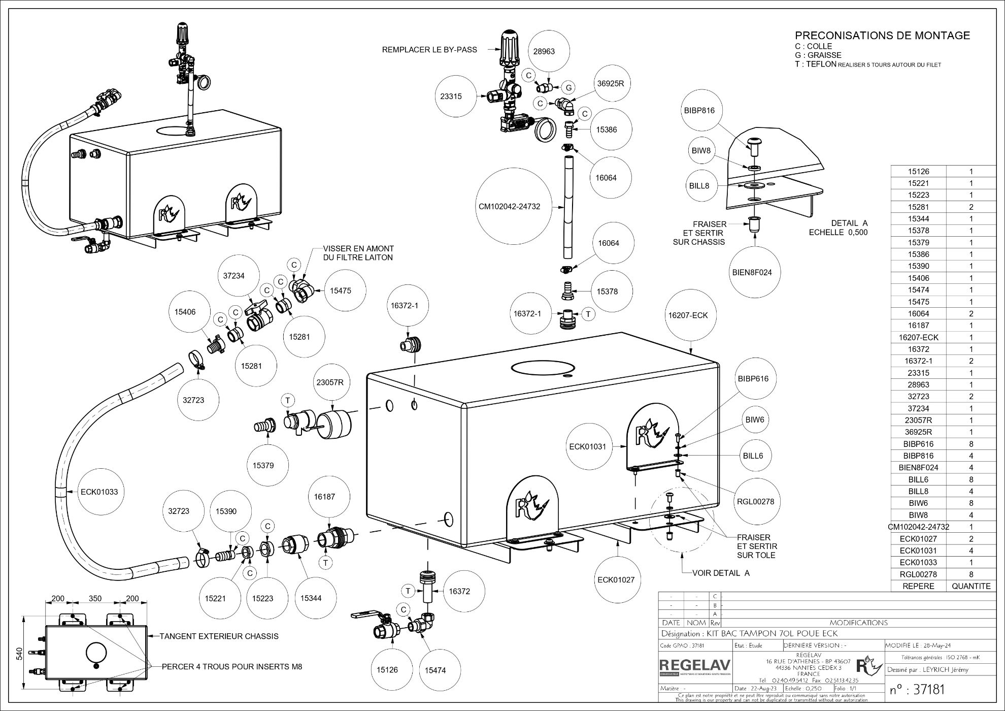 - Muni de 4 butées en tôle inox 304L pour maintenir la cuve en position