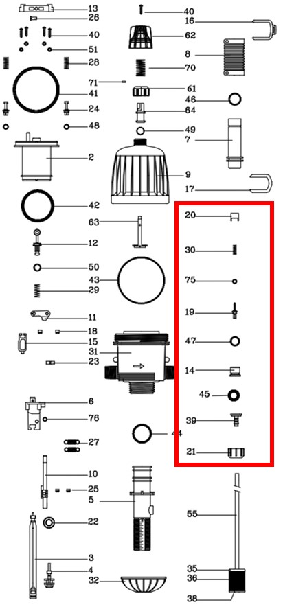 - Livré avec les pièces entourées en rouge sur la vue éclatée : 14-19-20-21-30-39-45-47-75
