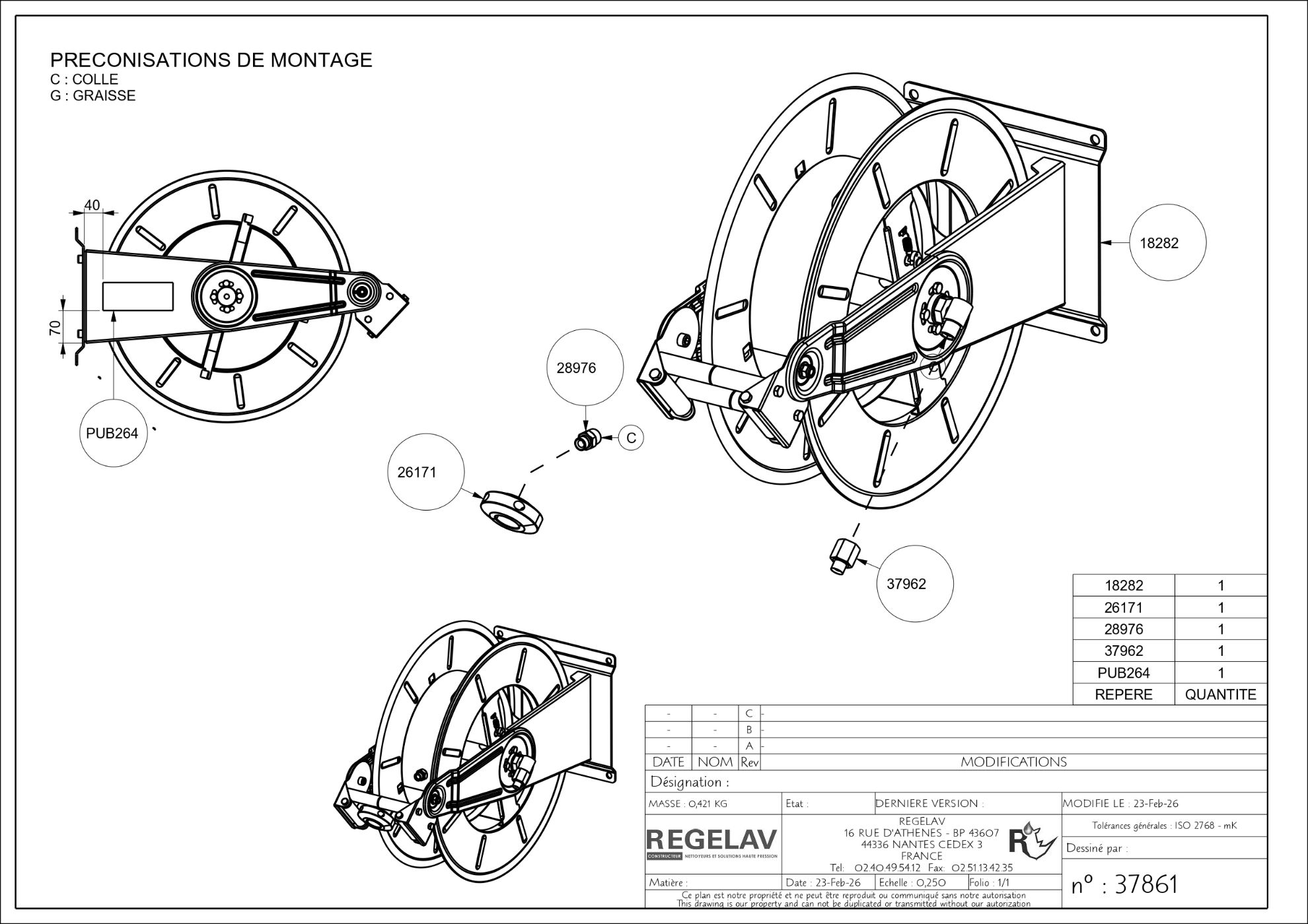 - Permet d'enrouler jusqu'à 35m de flexible DN10 HP