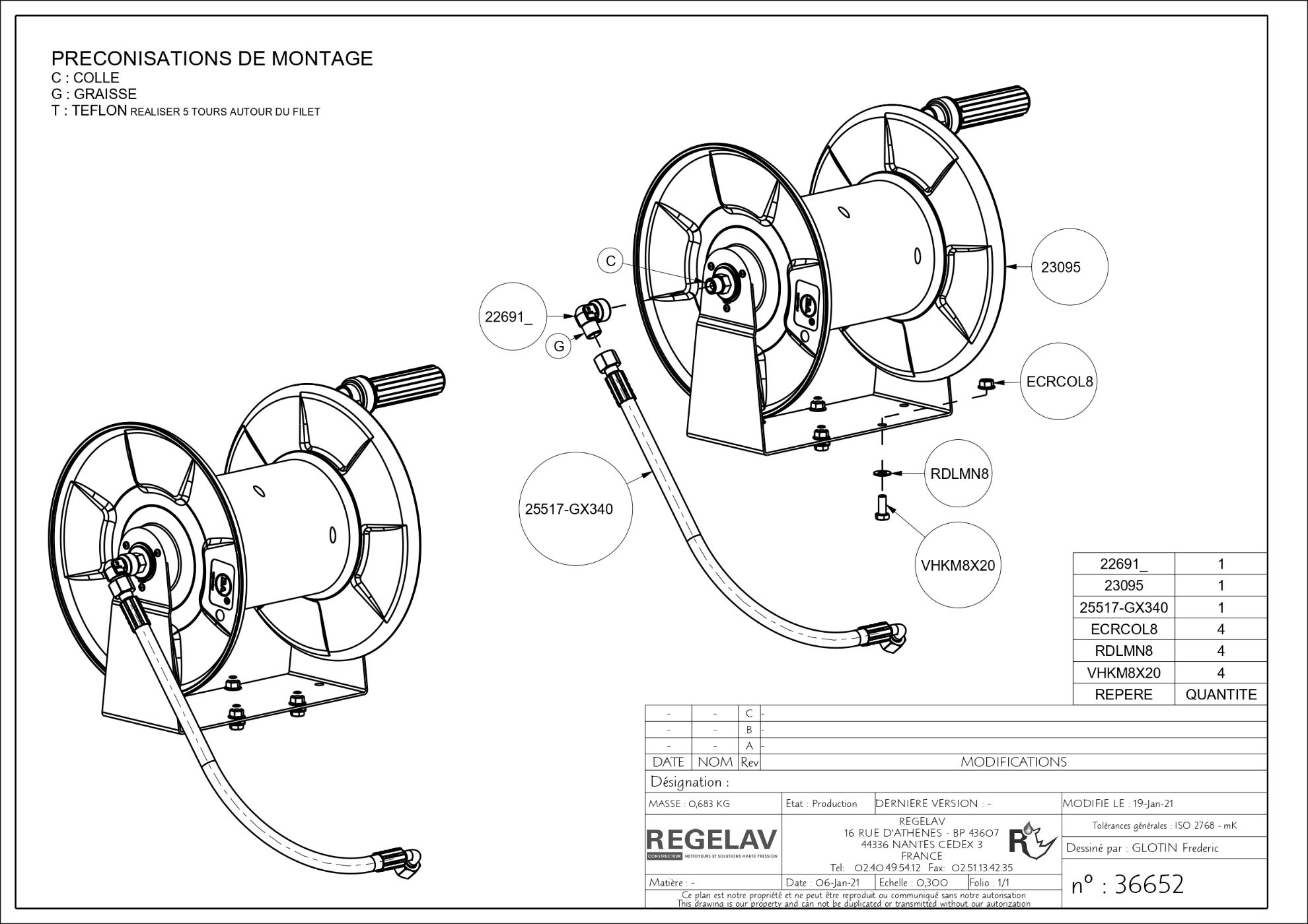 - Pouvant contenir 20 m de flexible DN8 HP (préconisé par REGELAV)