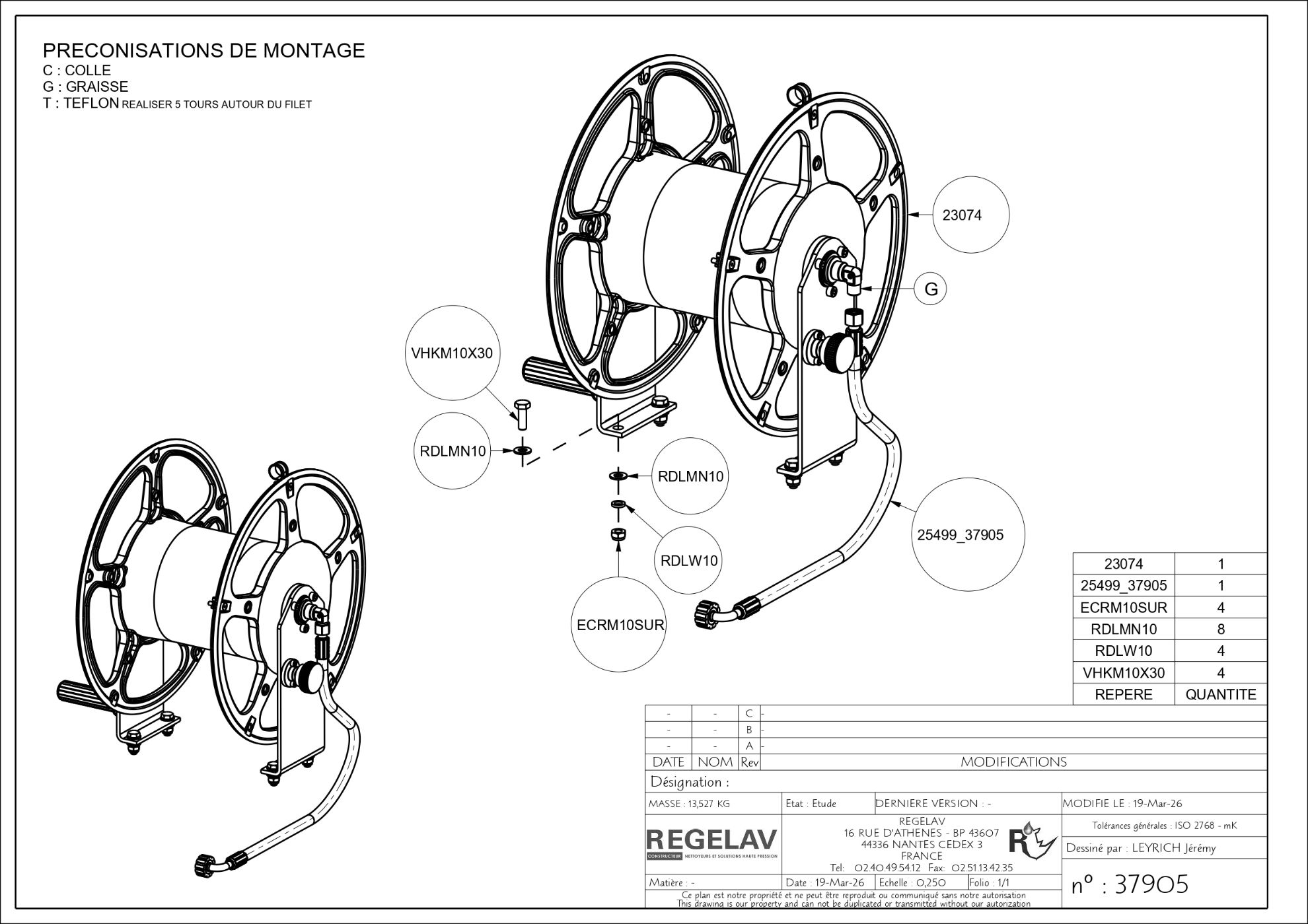 - Pouvant contenir 70 m de flexible DN10 HP (préconisé par REGELAV)