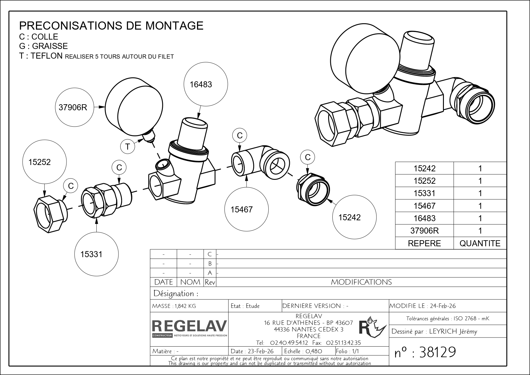 - Plage de pression : 1.5 à 6 bar