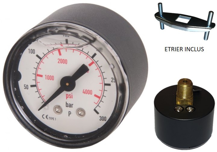 Manomètre liquide axial 0-250 Bar Ø50 MNPT1/4 boitier plastique