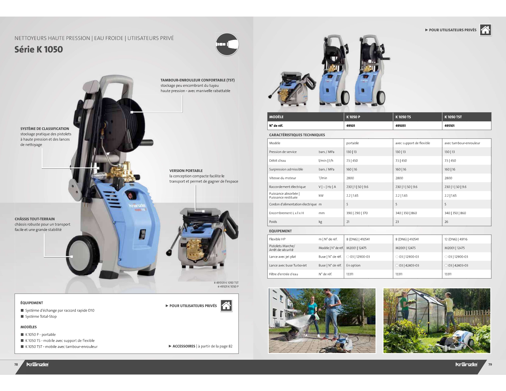 Le nettoyeur haute pression K 1050 Nettoyeur haute pression KRANZLE à eau froide semi-professionnel