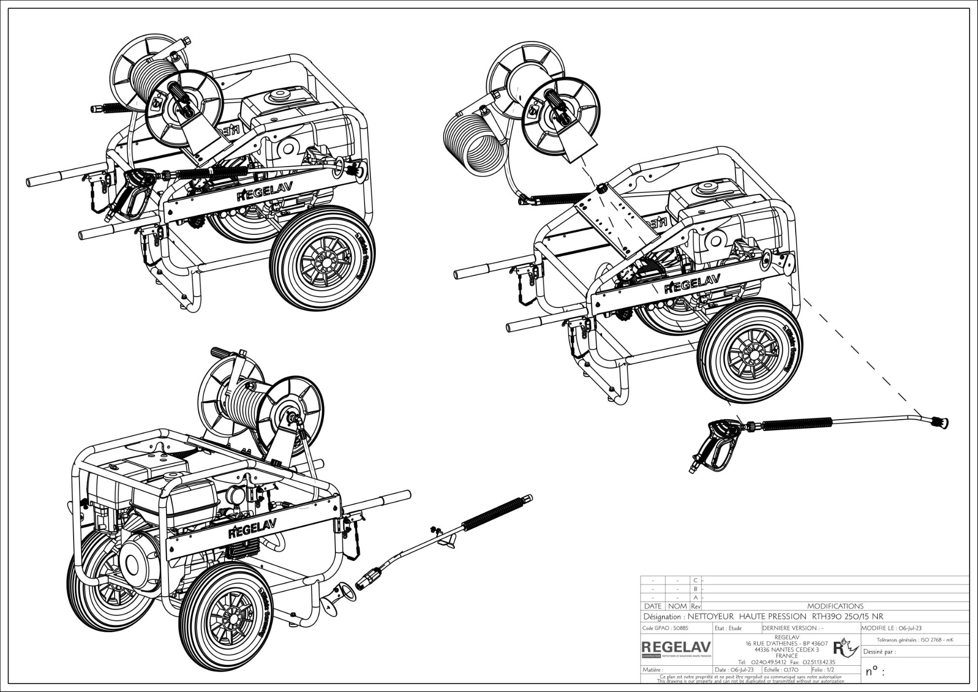 Nettoyeur Haute Pression 250 Bars - 15 l/min - 10m - Modèle RTH390 NR
