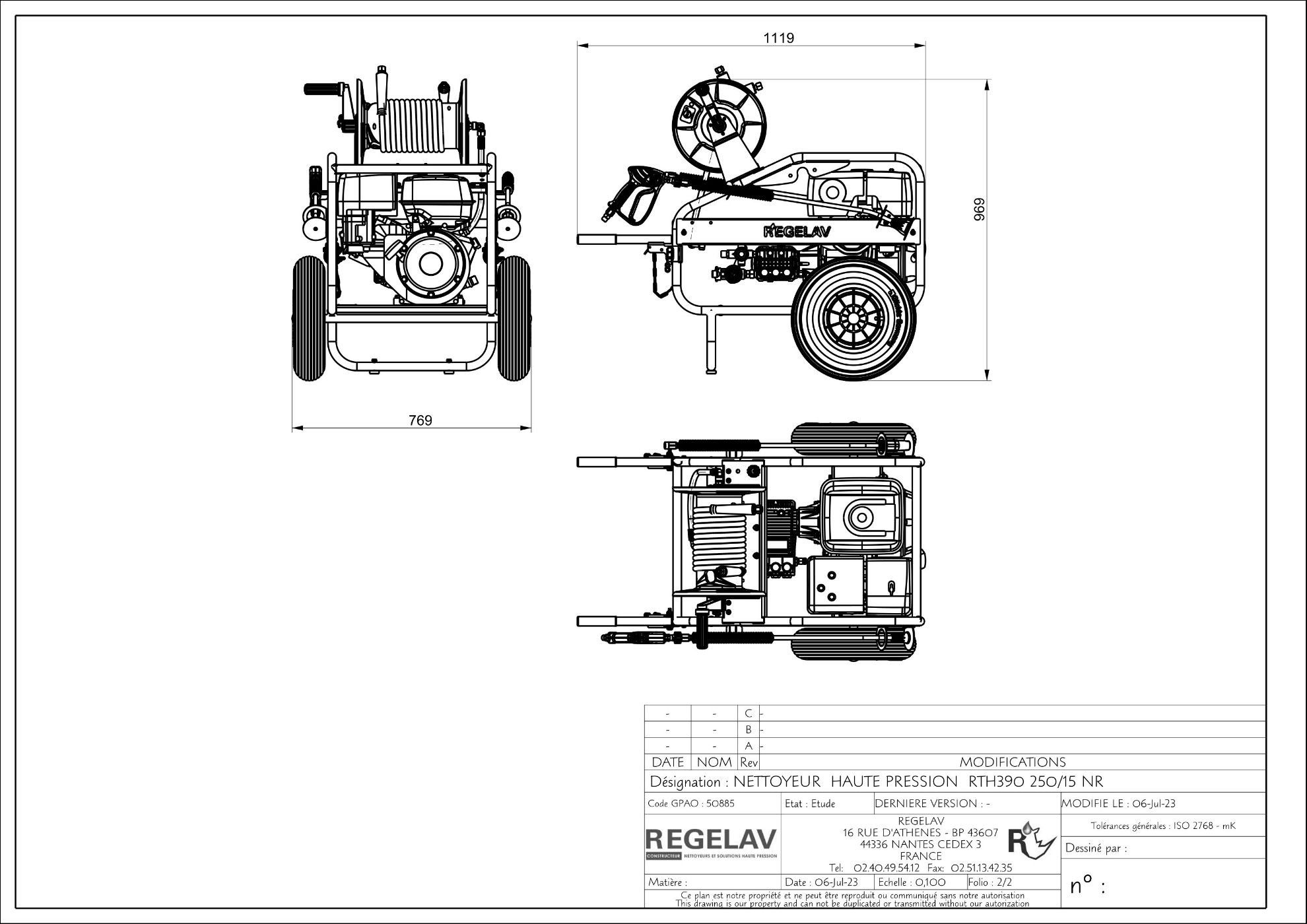 Nettoyeur Haute Pression 250 Bars - 15 l/min - 20m - Modèle RTH390 NR