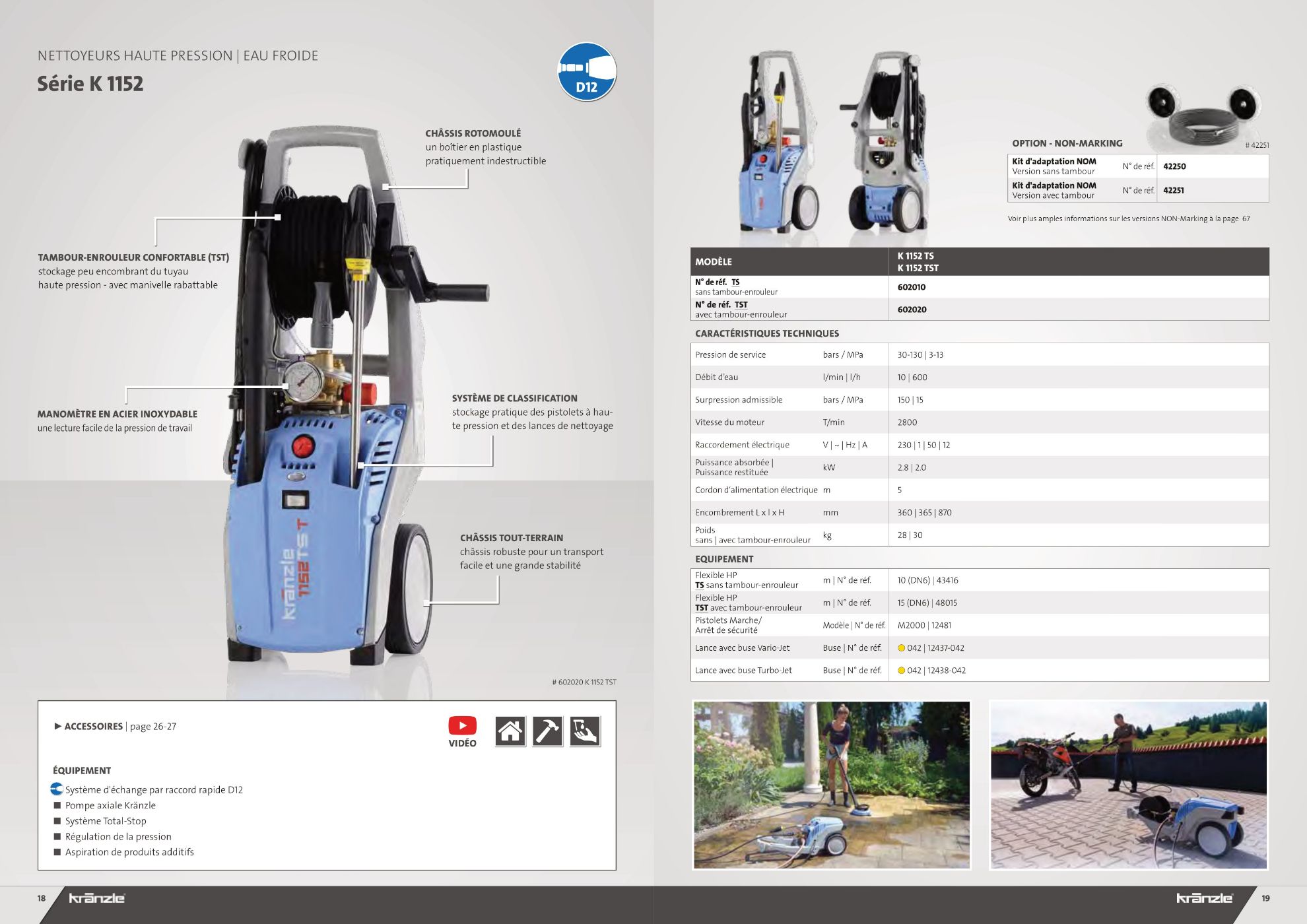 Le nettoyeur haute pression K 1152 Nettoyeur haute pression KRANZLE à eau froide semi-professionnel