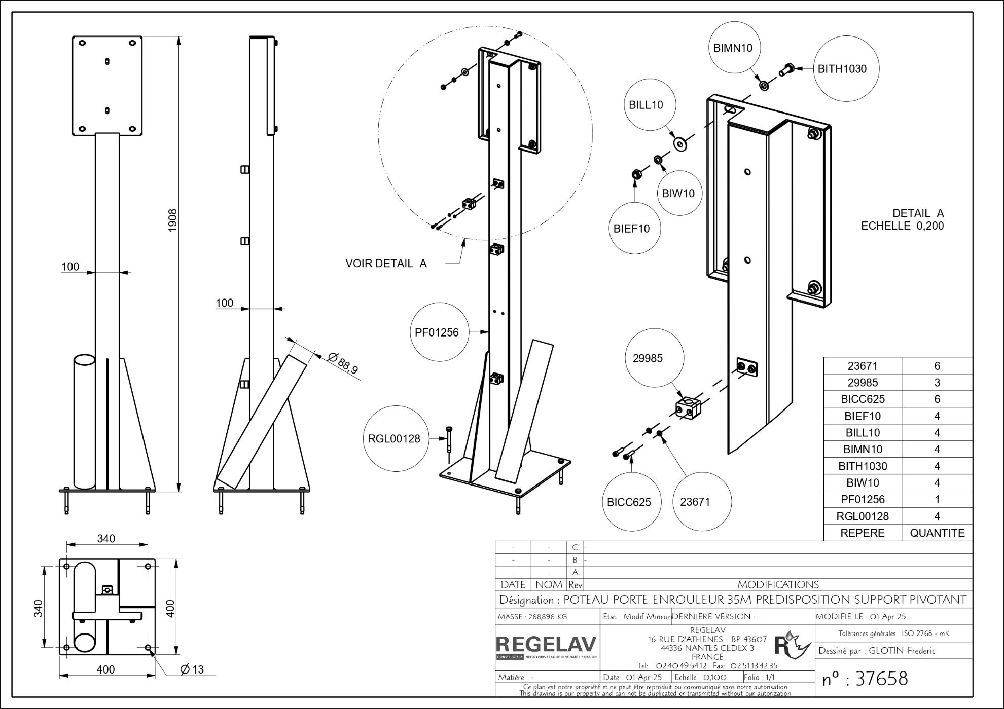Poteau inox support enrouleur auto 35m (prédisposition support pivotant)