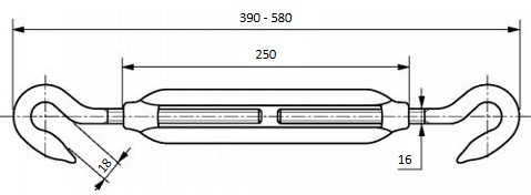 Tendeur (ridoir) M16 crochet-crochet 390mm inox